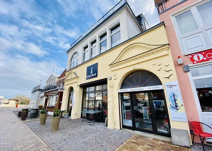 Das 80 m^2 große Promenadenblick/Captains-Suite liegt nur 14 Gehminuten vom Strand Strand Warnemuende entfernt und bietet Windsurfen, Bowling und Angeln zum aktiven Zeitvertreib. Das am Strand Apartment liegt in einer Entfernung von nur 14 Gehminuten vom Leuchtturm Warnemünde.